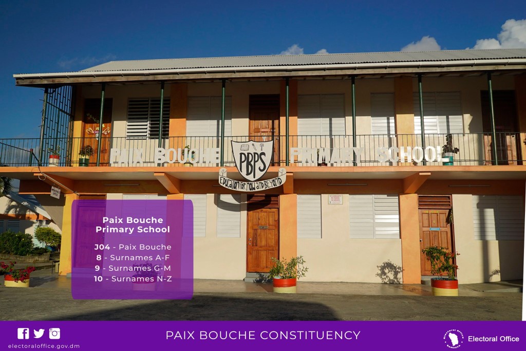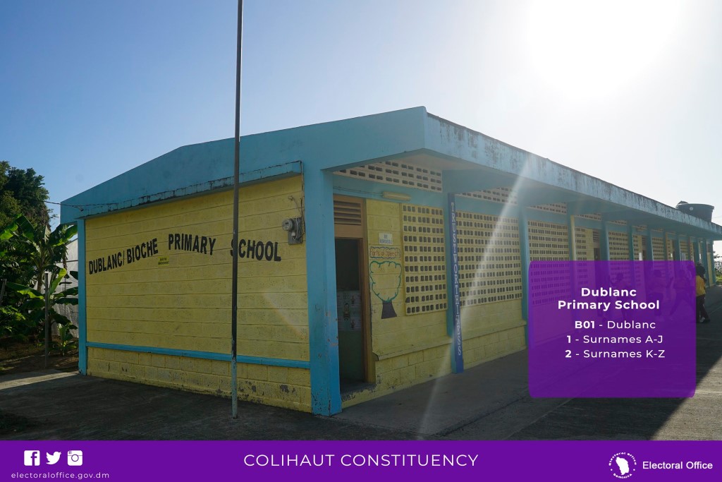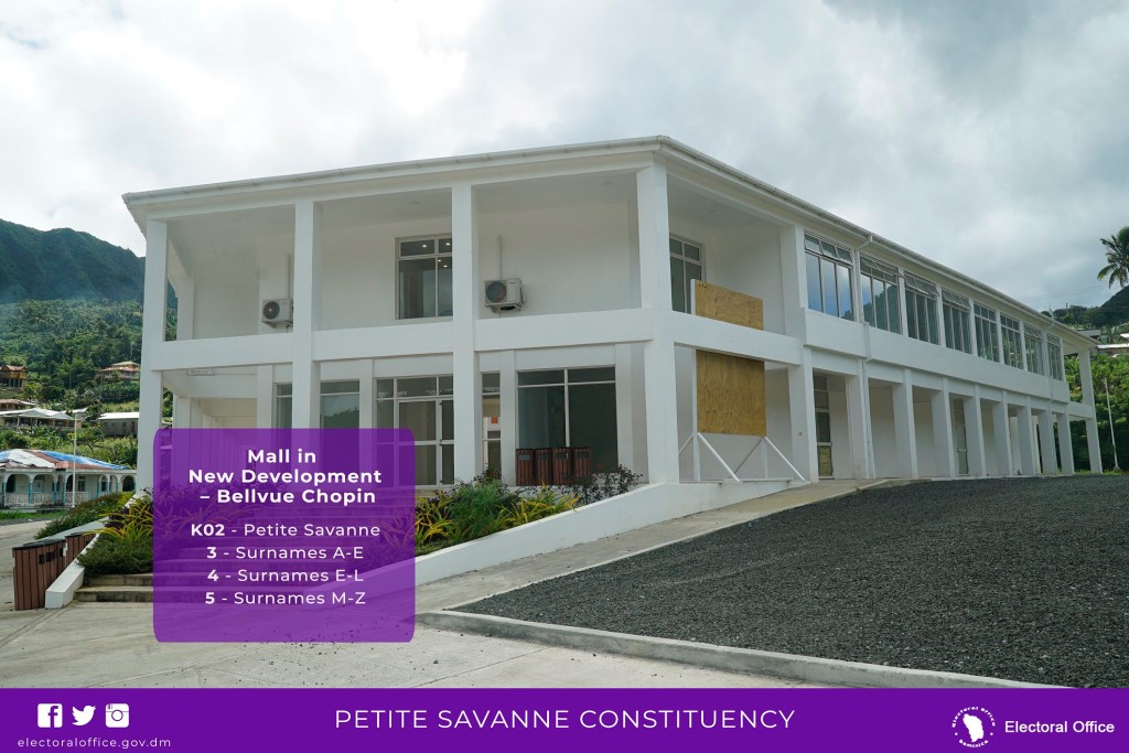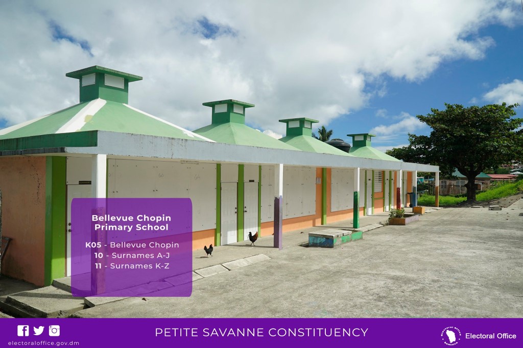 1 Vieille Case ConstituencyHouse of Vincent Elizee Court Room Penville Primary School House of Yolande Jno Jules N.C.C.U. Thibaud Sub Office Resource Centre – Lower Penville Village Council Office, Thibaud Village Council Office, Vielle Case 2 Cottage ConstituencyToucarie Chapel Capuchin Resource Centre Clifton Primary School Cottage Community Centre Portsmouth Secondary School Savanne Paille Primary School 3 Portsmouth ConstituencyDos Dane Women’s Centre House of Mavis Augustine St. John’s School Sun Flower Pre School Roosevelt Douglas Primary School House of Debra & Anthony George 4 Paix Bouche ConstituencyPaix Bouche Primary School Bense Primary School Calibishie Primary School Anse de Mai Catholic Church Hall 5 Colihaut ConstituencyDublanc Primary School Bioche Fisheries Complex Colihaut Primary School 6 Salisbury ConstituencyCoulibistrie Primary School Gospel Hall First Baptist Church Morne Rachette Resource Centre Christian Assembly Ministries 7 Mahaut ConstituencyWarner Primary School C.C.F Office Campbell Primary School Canefield Community Centre Canefield Pre-School House of Terry Ryan Mahaut Community Centre Mahaut Fisheries Co-operative Mahaut Post Office Massacre – Canefield Primary School Office of Disaster Management, Jimmit Old Mill Cultural Centre 8 Soufriere ConstituencySt. Luke’s Primary School Soufriere Chruch Hall Scotts Head Primary School Soufriere Village Council Office Pointe Michel Resource Centre 9 Roseau North ConstituencyHouse of Marigold Ulysses St. Alphonsus Pre-School Alpha Centre Christian Union Pre-School Dominica Football Facility Fond Cole Community Centre Goodwill Parish Hall Goodwill Primary School House of Cleville Shillingford Christian Union Primary School N04 – Red Cross Headquarters N04 – 10 Grand Bay ConstituencyGrand Bay Village Council Grand Bay Youth Centre House of James Henderson House of Melanie Henderson Montine Resource Center Pierre Charles Secondary School St-Jeromes Ministry 11 Morne Jaune/Riviere Cyrique ConstituencyGrand Fond Primary School Morne Jaune Primary School Tere Yam Community Hall 12 Marigot ConstituencyConcord Primary School Marigot Village Council Office Pentecostal Church, Sams Cutter W.S. Stevens School, Weirs Zion Methodist Pre-School 13 Salybia ConstituencyHouse of Hilford John, Atkinson House of Raphael Auguiste Salybia Primary School, St. Cyr Sineku Primary School, Mahaut River Atkinson Resource Centre Bataca Church of Nazarene Bataca-Church-of-Nazarene House of Clamance Frederick ISULKATI Special Needs School, Crayfish River Church of the Nazarene, Caulette River 14 Castle Bruce ConstituencySan Sauveur Primary School Castle Bruce Primary School Fair Trade Building Good Hope Resource Centre Petite Soufriere Community Centre 15 Laplaine ConstituencyVillage Council Office, Carib Boetica Hurricane Shelter House of Jennifer Baron Jones Beaupierre Primary School House of Pose – Cuffy David Joseph House of Fernanda Giraudel, Case O’Gowrie House of Benedict Jno Baptiste 16 Petite Savanne ConstituencyPichelin Community Centre Bagatelle Primary School Bellevue Chopin Primary School House of Fannie Charles, Crandbay Mall in New Development – Bellvue Chopin 17 Roseau South ConstituencyAlliance Francaise Giraudel Primary School Harlem Plaza House of Annette St. Hilaire House of Rosamund Lebruin Kingshill Baptiste Church Lily’s Disco Loubiere Resource Centre Newtown Primary School Old Community Shop Old Health Centre Roseau Primary School 18 St. Joseph ConstituencyBelles Primary School Layou Tourism Facility Matthew’s Hall Somerset Sports Club Kelleb Laurent Primary School St. Joseph Community Centre House of Ms. Saint John (Mero) 19 Roseau Central ConstituencyAll Saints University Windsor Park Sports Stadium St. Mary’s Primary St. Martin’s Primary School (infant) Convent Preparatory School St. Martin’s Primary School (upper) 20 Roseau Valley ConstituencyWotten Waven Resource Centre Cochrane Primary School House of Nathalie Joseph House of Samuel Lugay, Copthall Laudat Primary School Morne Prosper Pre-School Morne Prosper Primary School Trafalgar Pre-School Trafalgar Primary School 21 Wesley ConstituencyHouse of Jennifer Phillip House of June Joseph Wesley Primary School Woodford Hill Primary School House of June Joseph (Pre-School) This article is copyright © 2019 DOM767